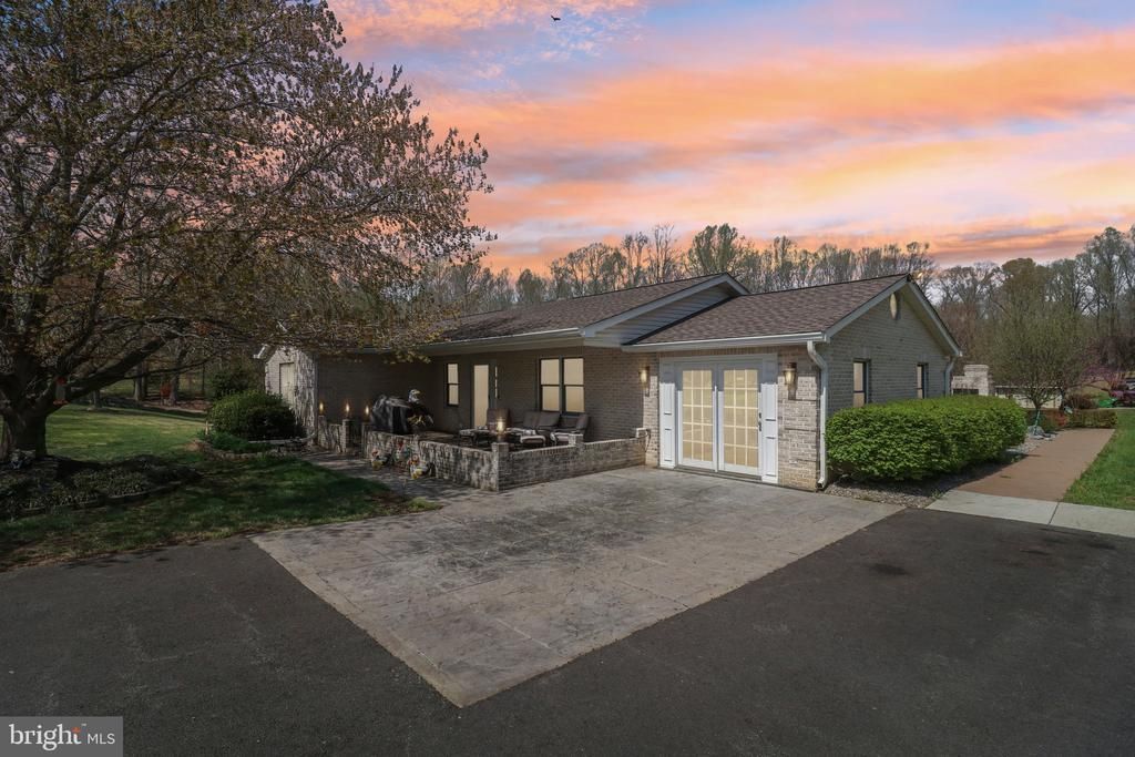 NO HOA! Exceptional 3-acre property offering extensive outdoor amenities, multiple outbuildings, and outstanding versatility. The property is accessed by a long private driveway, with freshly stained stamped-concrete walkways providing convenient access throughout the grounds. The exterior features include a fenced in-ground pool with a fully equipped pool house offering a kitchenette and mini-split system. There are five total outbuildings, including three oversized garage bays suitable for large vehicles or RV storage, complete with a car lift and built-in cabinetry. Attached to the garage is a separate 1-bedroom, 1-bath accessory dwelling unit with a full kitchen and pellet stove, ideal for guests or potential rental use. A large, stocked pond with catfish, bluegill, bass, and additional species enhances the setting and supplies water to the front yard sprinkler system. An accessible courtyard with an outdoor fireplace provides additional space for outdoor enjoyment and entertaining. The interior offers a flexible layout with multiple additions. The main level includes a versatile room suitable for a bedroom or office. The updated kitchen features granite countertops, stainless steel appliances, and freshly painted cabinetry, and opens to a spacious living area. A sunroom at the rear of the home provides abundant natural light and additional living or workspace. Additional interior features include a large laundry room and an updated hall bath. The primary bedroom includes double closets and an en-suite bath. Three additional bedrooms offer ample space for a variety of needs. Recent improvements include a new roof, newer HVAC system, and a recently pumped septic system. Property is being sold as-is.