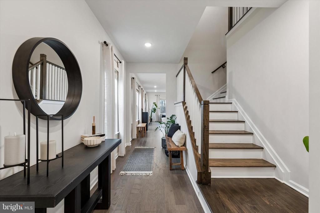 Welcome to this stunning 3 bedroom, 3.5 bathroom thoughtfully upgraded Faraday Model, offering exceptional design, modern finishes, and a rare sunroom addition that enhances both the main level and the expanded lower level. From the moment you enter, you are greeted by a welcoming foyer with a convenient powder room, elegant hardwood, and recessed lighting that continues throughout the home. The main living area is bright and inviting, featuring a spacious living room with a ceiling fan, a dedicated dining area, and a highly desirable and rare sunroom that fills the space with natural light and provides access to the rear deck. The kitchen is beautifully appointed with quartz countertops, upgraded cabinetry, stainless steel appliances including a gas range, microwave, dishwasher, and double door refrigerator, as well as an oversized farmhouse sink. A large center island with seating for 4, a walk in pantry, and a dedicated coffee bar complete this impressive space. Convenient access to the attached 2 car garage and basement is also located just off the kitchen. Upstairs, a wide staircase leads to a well designed second level with a linen closet and a full laundry room. The primary suite offers a true retreat with recessed lighting, a ceiling fan, a flexible area ideal for a home office or gym, and a private balcony. The luxurious en suite bath features dual vanities, a private toilet room, and an upgraded glass enclosed shower. Two spacious walk in closets complete the suite. Two additional bedrooms are generously sized, each with ceiling fans, including one with a walk in closet. A full hallway bathroom with a tub shower combination serves these rooms. The fully finished basement is absolutely spectacular and offers incredible additional living space, made even larger by the sunroom extension above. This level features recessed lighting throughout, a full bathroom, a bonus area that can function as a 4th bedroom or office, a wine bar, and ample storage. The space is perfect for entertaining, recreation, or extended living, and may include a pool table and custom play features with acceptable offer. With over $127,535 in upgrades, including a finished basement, expanded deck, high end kitchen and bath finishes, hardwood flooring, and enhanced lighting throughout, this home is truly move in ready. Additional improvements such as window treatments, lighting fixtures, ceiling fans, and smart home features including a Ring doorbell and electronic keypad add even more value. This is a rare opportunity to own a highly upgraded home with unique features, flexible living space, and exceptional attention to detail. Schedule your showing today!